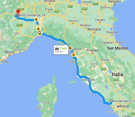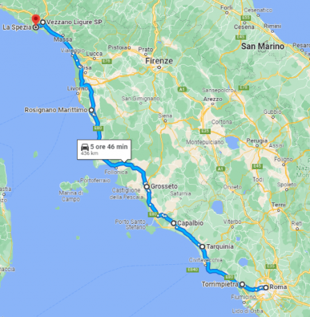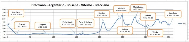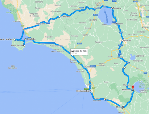 Bracciano, Cerveteri, Civitavecchia, Argentario, Bolsena, Viterbo, Bracciano.