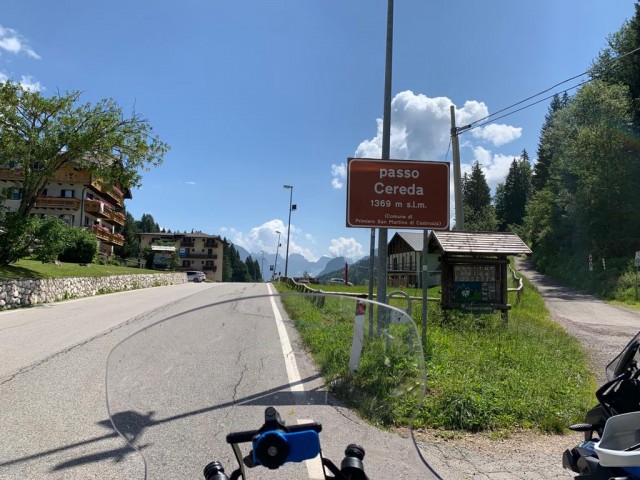 Pranziamo al baretto nei pressi della cascata, fanno ottimi panini, e riprendiamo le moto per il rientro verso il camping. Passiamo da Busche, Feltre e dal passo Croce d'Aune: l'unico che io ricordi con i cordoli disegnati ai lati delle curve! C'è ancora il tempo per fare una strada per me inedita, la discesa verso Faller dal Col Falcon, prima di risalire al Casteltesino Camping.