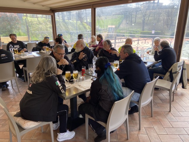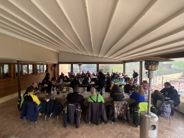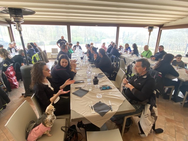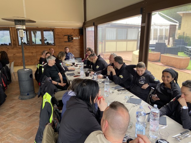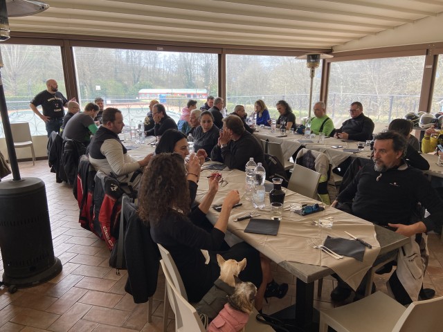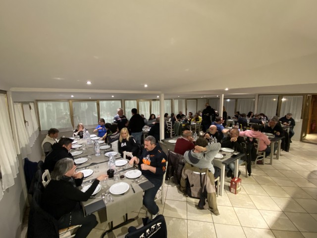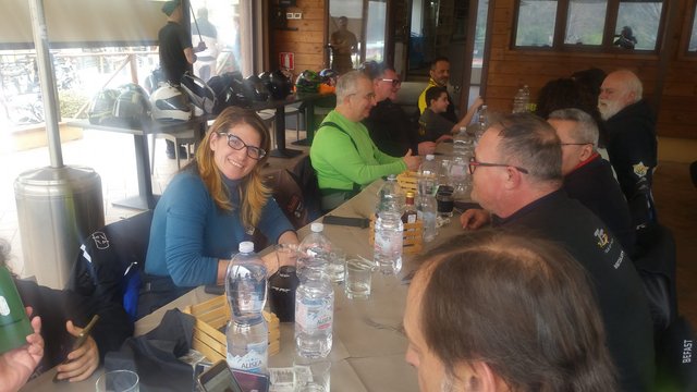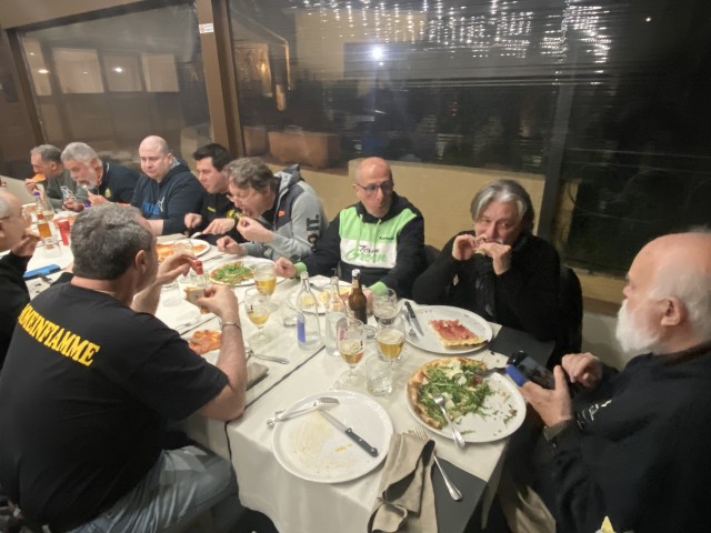 .A rientro dal tour conosco il mitico Davide e suo figlio e la sera a tavola mi ritrovo con Yeti vicino che nn mi fa mancare il vino e altri cari amici Motociclisti si cena benissimo gran bella serata... Brindisino