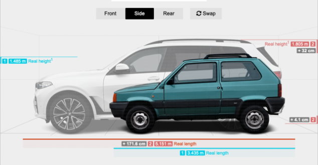 Per curiosità sono andato a vedere le dimensioni della mia macchina, che mi soddisfa e per strada incontro SUV decisamente più grandi: