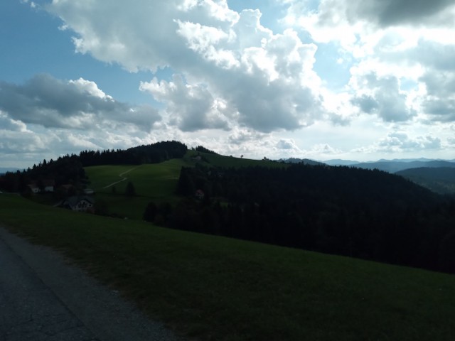 Abbiamo percorso la strada panoramica tra Lokavec e Predmeja che è assai bella, con gallerie scavate nella roccia, fondo così così soprattutto nei tratti in galleria.