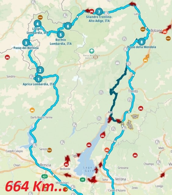 Il percorso di avvicinamento è ormai stracollaudato. Si fa rotta verso Brescia per prendere la SP510 che, costeggiando il lago d'Iseo porta ad Edolo.