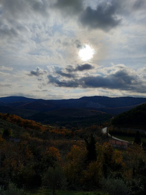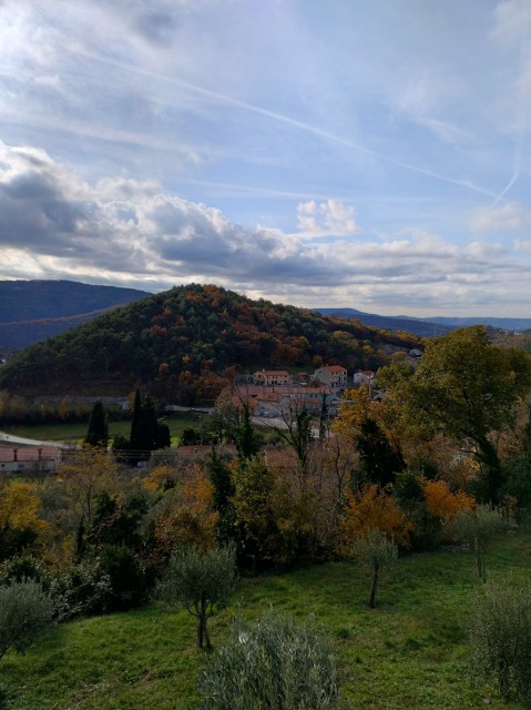 Le colline nei dintorni mostrano ancora un po' di foliage.