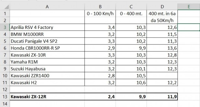E la cosa che pensavo non fosse in discussione, la zx12 di 25 anni fa ha una accelerazione migliore della h2, sia nel breve che nel lungo, e pure in ripresa.