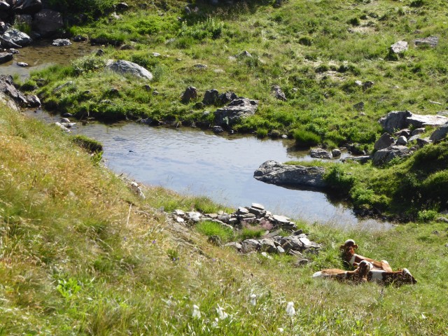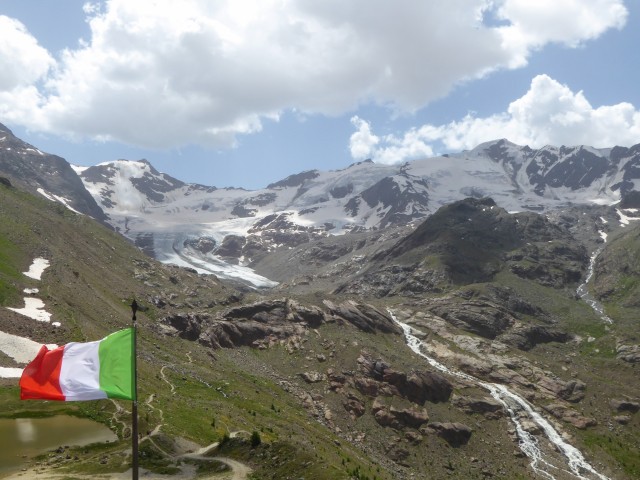 L'indomani, alle 8.10 sono già sulla moto, 14 gradi buoni buoni e arrivo al parcheggio che è ancora mezzo vuoto; mi cambio e inizio a scarpinare sul Sentiero Glaciologico Alto. Incontro diversi "ricordoni" sul sentiero e poi vedo anche le donatrici