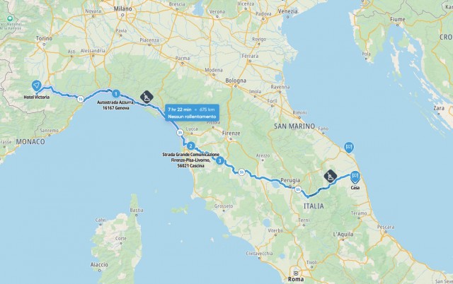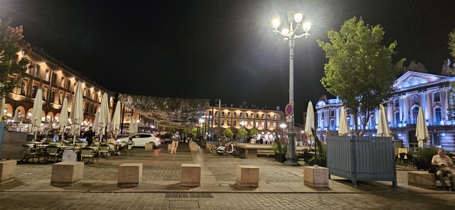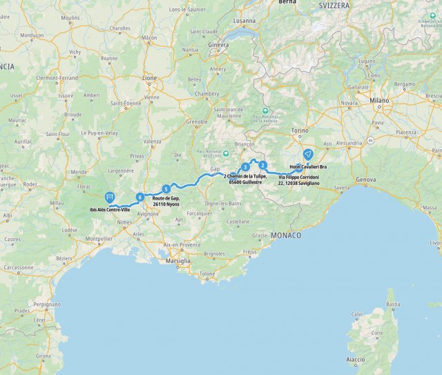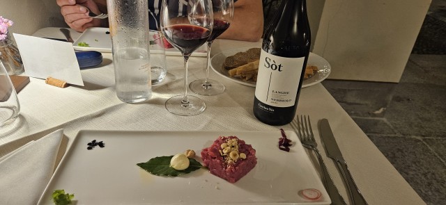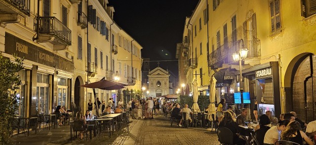 Mi sa che abbiamo sbagliato bar! Ci rimettiamo in moto e scendiamo a Cuneo dove troviamo alloggio all'hotel Victoria, con un box in un garage sotterraneo. In quest'hotel abbiamo soggiornato anche l'anno scorso e sappiamo che e' ottimo, anche se e' un po' lontano dal centro storico. Doccia con calma e si va in centro per la cena con la quale festeggiare il rientro in patria.