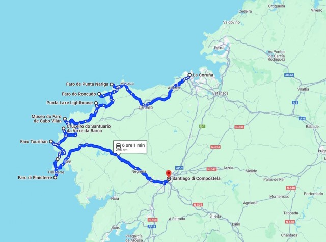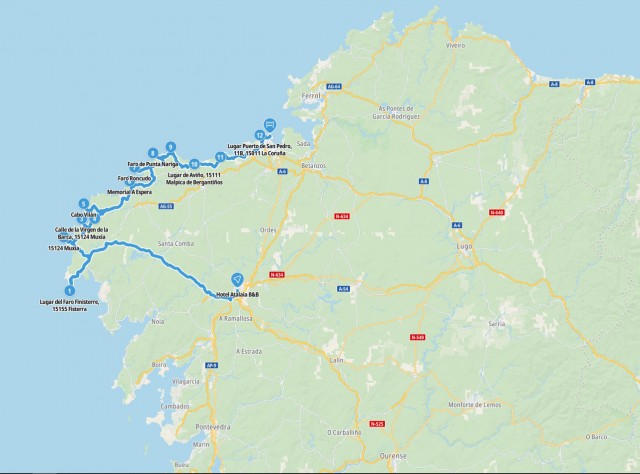 , quindi passiamo nel paese di Fisterre per comprare un adesivo per il bauletto.