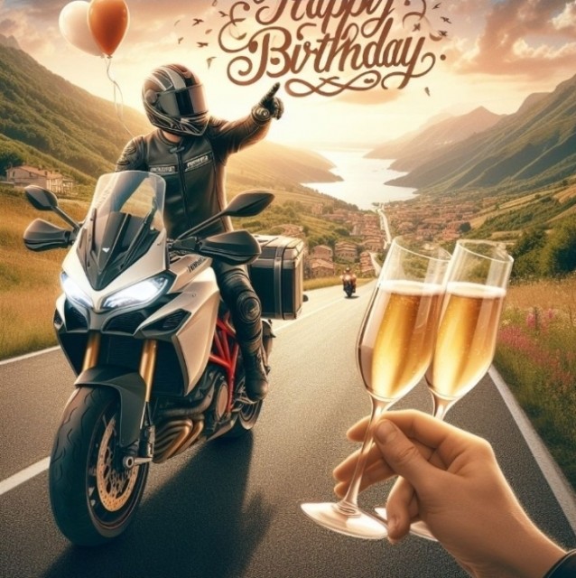 Nel mondo dei motociclisti, il compleanno non è solo un giorno in più sul calendario, ma un momento per celebrare la libertà e l'avventura che ogni viaggio su due ruote rappresenta. È un giorno per riflettere sui chilometri percorsi, sulle strade esplorate e sulle amicizie forgiate lungo il cammino. I Fratelli Motociclisti condividono un legame unico, forgiato dal ruggito dei motori e dal vento che accarezza i nostri caschi. Che questo compleanno porti nuove strade da esplorare, nuove storie da raccontare e nuove esperienze da vivere. Che ogni curva riveli un paesaggio mai visto e ogni sosta sia un'occasione per un sorriso condiviso. Auguri di cuore per un anno pieno di avventure e scoperte, sempre in sella alla vostra fedele compagna di viaggio, la motocicletta. Buon compleanno Fratelli Motociclisti, e che la strada davanti a voi sia sempre aperta e invitante!