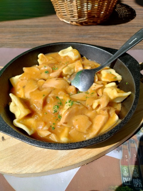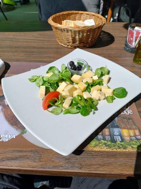 Formaggio di Tolmin e gnocchi ripieni tipici di Idrija, birra caffè. 22 euro a cranio. Not bad.