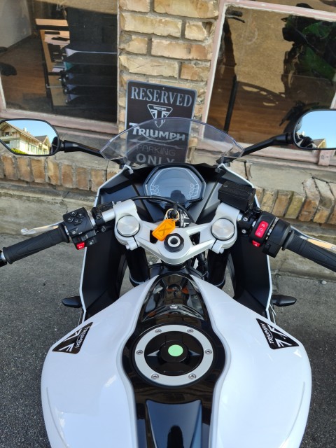 ... perché è la concessionaria Triumph meno lontana e la moto sembra impeccabile, per di più già con il trio di borse che potrebbero venirmi comode per qualche viaggetto.