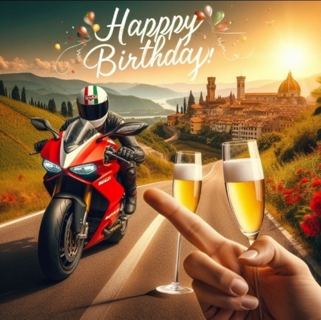 Nel mondo dei motociclisti, il compleanno non è solo un giorno in più sul calendario, ma un momento per celebrare la libertà e l'avventura che ogni viaggio su due ruote rappresenta. È un giorno per riflettere sui chilometri percorsi, sulle strade esplorate e sulle amicizie forgiate lungo il cammino. I Fratelli Motociclisti condividono un legame unico, forgiato dal ruggito dei motori e dal vento che accarezza i nostri caschi. Che questo compleanno porti nuove strade da esplorare, nuove storie da raccontare e nuove esperienze da vivere. Che ogni curva riveli un paesaggio mai visto e ogni sosta sia un'occasione per un sorriso condiviso. Auguri di cuore per un anno pieno di avventure e scoperte, sempre in sella alla vostra fedele compagna di viaggio, la motocicletta. Buon compleanno Fratelli Motociclisti, e che la strada davanti a voi sia sempre aperta e invitante!