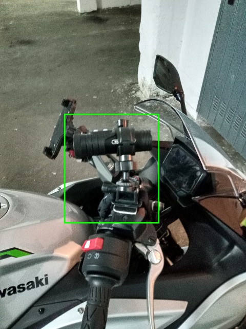 A destra: dashcam. Metterla in maniera artigianale e rocambolesca sopra il contenitore dell'olio del freno è cosa che ha dato i suoi frutti, perchè la sistemazione è stabile, e l'angolo di visuale più che adeguato.
