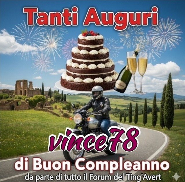 Nel mondo dei motociclisti, il compleanno non è solo un giorno in più sul calendario, ma un momento per celebrare la libertà e l'avventura che ogni viaggio su due ruote rappresenta. È un giorno per riflettere sui chilometri percorsi, sulle strade esplorate e sulle amicizie forgiate lungo il cammino. I Fratelli Motociclisti condividono un legame unico, forgiato dal ruggito dei motori e dal vento che accarezza i nostri caschi. Che questo compleanno porti nuove strade da esplorare, nuove storie da raccontare e nuove esperienze da vivere. Che ogni curva riveli un paesaggio mai visto e ogni sosta sia un'occasione per un sorriso condiviso. Auguri di cuore per un anno pieno di avventure e scoperte, sempre in sella alla vostra fedele compagna di viaggio, la motocicletta. Buon compleanno Fratelli Motociclisti, e che la strada davanti a voi sia sempre aperta e invitante!