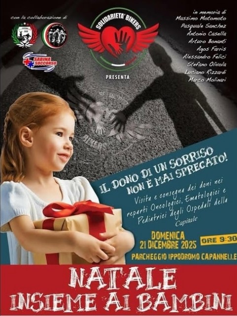 • L'Appuntamento è per Domenica 21 Dicembre 2025 al parcheggio del l'Ippodromo delle Capannelle (Roma) alle 9.30 vestiti da Babbo Natale e con un dono per ogni Bambino ricoverato.