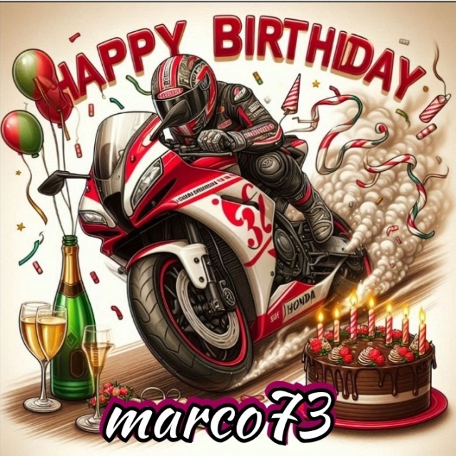 Nel mondo dei motociclisti, il compleanno non è solo un giorno in più sul calendario, ma un momento per celebrare la libertà e l'avventura che ogni viaggio su due ruote rappresenta. È un giorno per riflettere sui chilometri percorsi, sulle strade esplorate e sulle amicizie forgiate lungo il cammino. I Fratelli Motociclisti condividono un legame unico, forgiato dal ruggito dei motori e dal vento che accarezza i nostri caschi. Che questo compleanno porti nuove strade da esplorare, nuove storie da raccontare e nuove esperienze da vivere. Che ogni curva riveli un paesaggio mai visto e ogni sosta sia un'occasione per un sorriso condiviso. Auguri di cuore per un anno pieno di avventure e scoperte, sempre in sella alla vostra fedele compagna di viaggio, la motocicletta. Buon compleanno Fratelli Motociclisti, e che la strada davanti a voi sia sempre aperta e invitante!