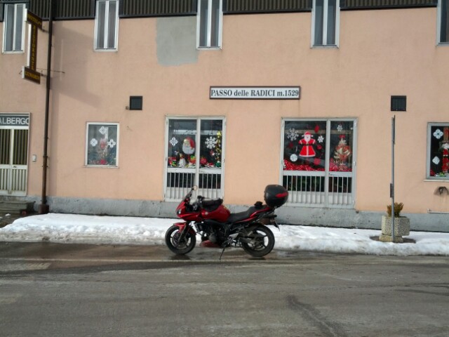 Una foto al Passo delle Radici bisogna sempre farla... le strade tendono ad essere gelate, si rischia di mettere il culo in terra