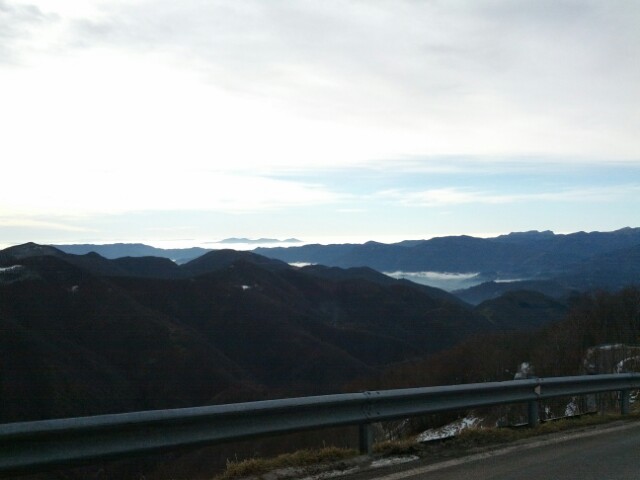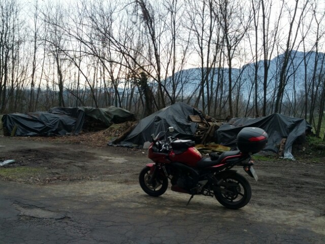 Le montagne di Febbio sono innevate ma le strade si prestano per la moto